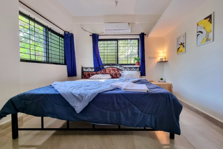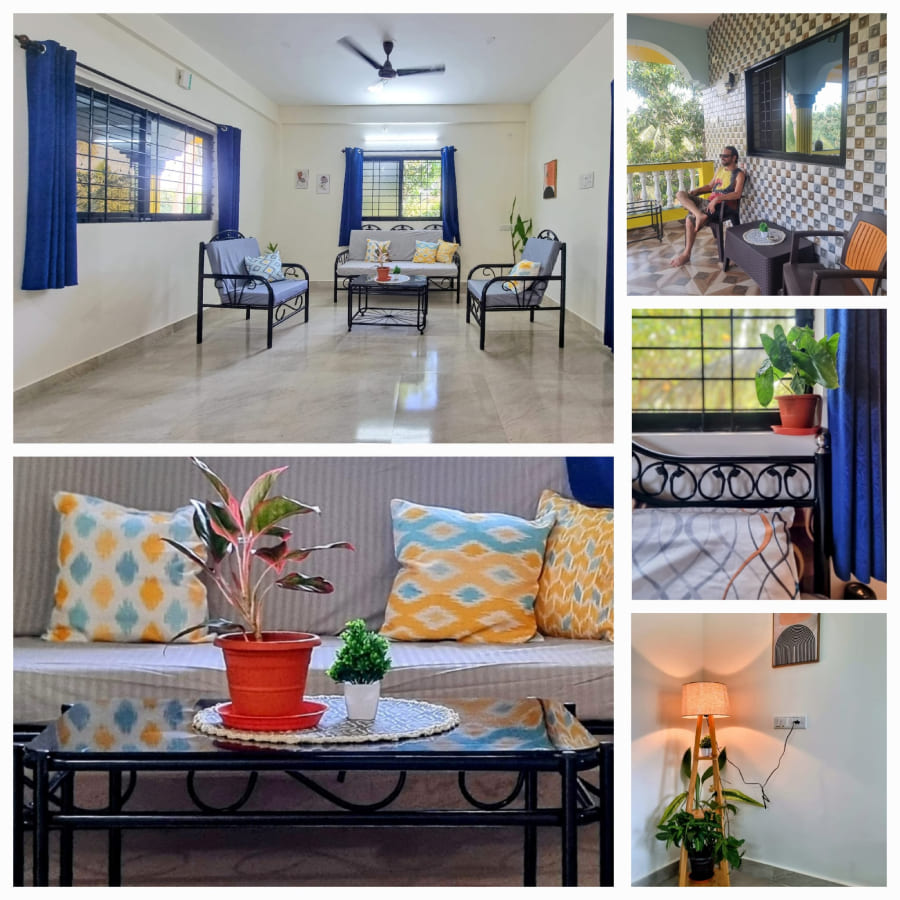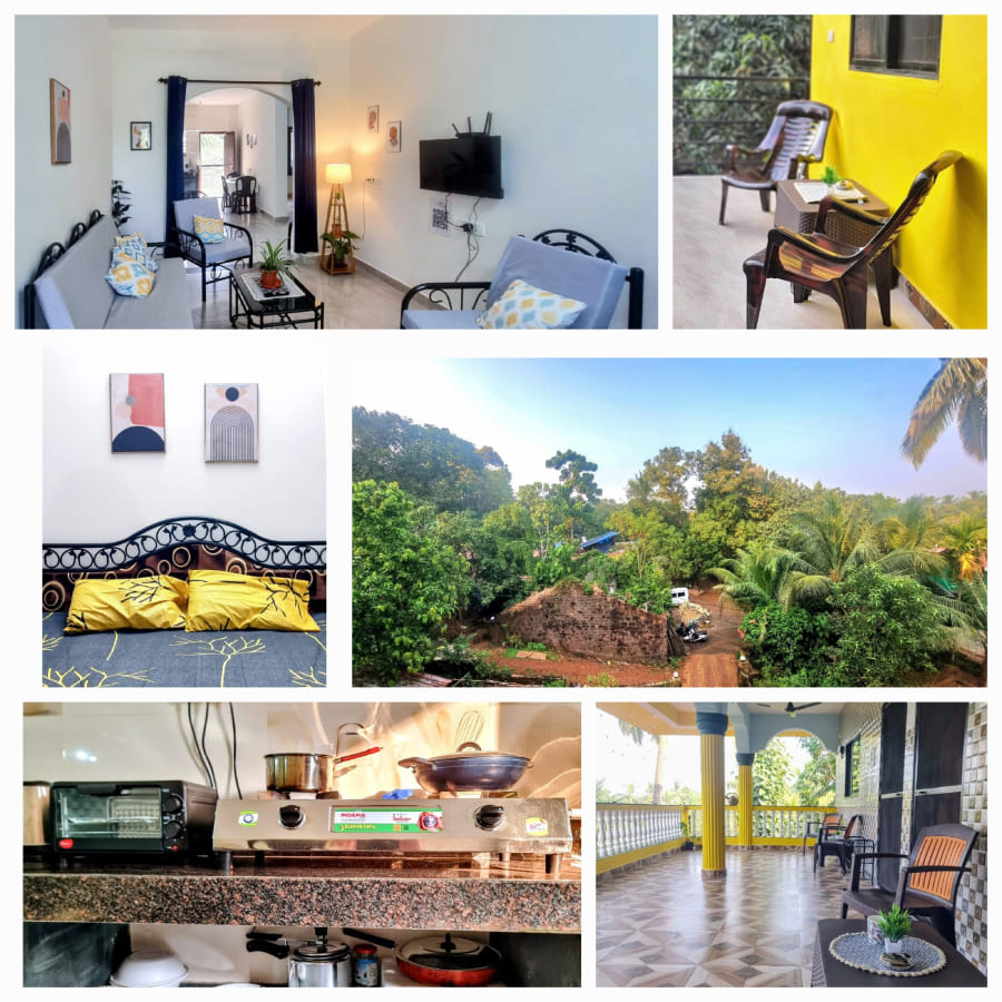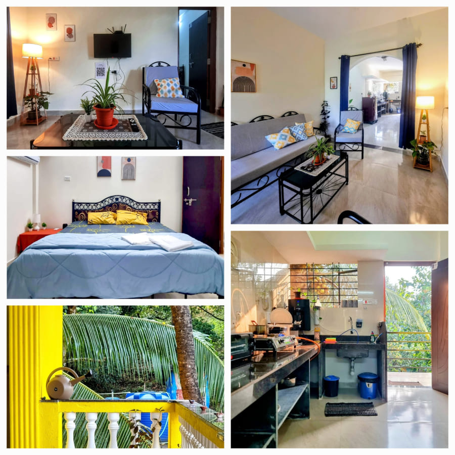 A cozy 1 BHK apartment offering modern comfort, peaceful surroundings, and all the essentials for a perfect Goan getaway.